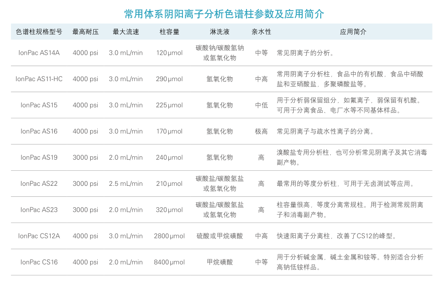 戴安開發(fā)的系列氫氧化物淋洗液分析柱,代表了離子色譜陰離子分析的最新發(fā)展方向。具有背景低,噪音小,靈敏度高的特點(diǎn)。可用于梯度淋洗和二維