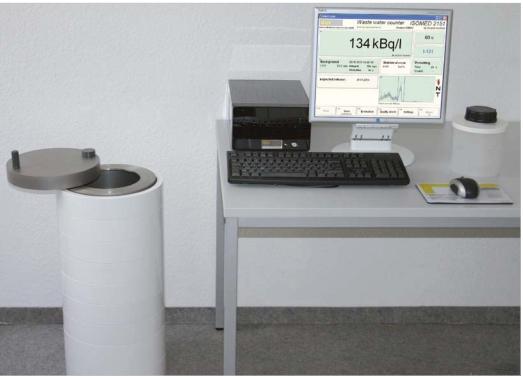 A 3“×3”碘化鈉閃爍探測器被用作探測器。它被放置在50毫米鉛屏蔽中。測量燒杯中插入頂部。廢水計數器ISOMED2151也可以被用來作為井型或者食品臺計數器。